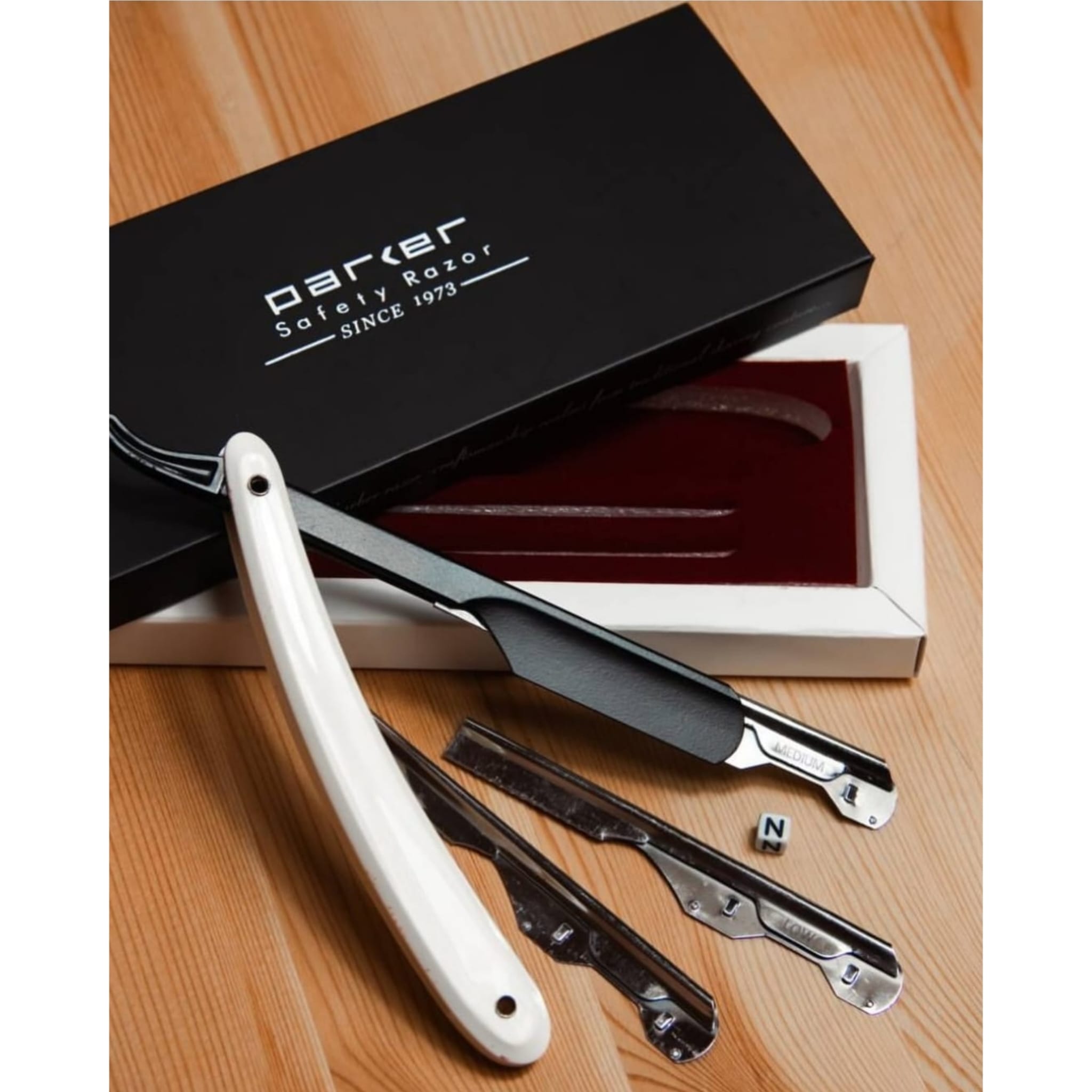 La Navaja de afeitar Parker SRW, también catalogada bajo la referencia 34R, es la combinación perfecta entre la estética tradicional de las barberías de época y la ingeniería de vanguardia. Este modelo destaca por su distintivo mango de resina blanca, que ofrece un contraste visual sofisticado con el brazo de acero inoxidable, convirtiéndola en una pieza de colección altamente funcional para el hombre moderno.