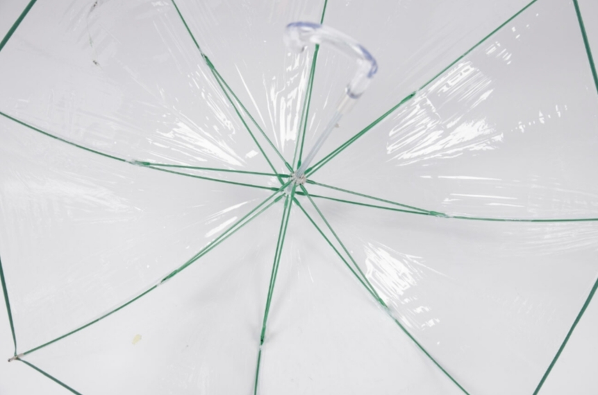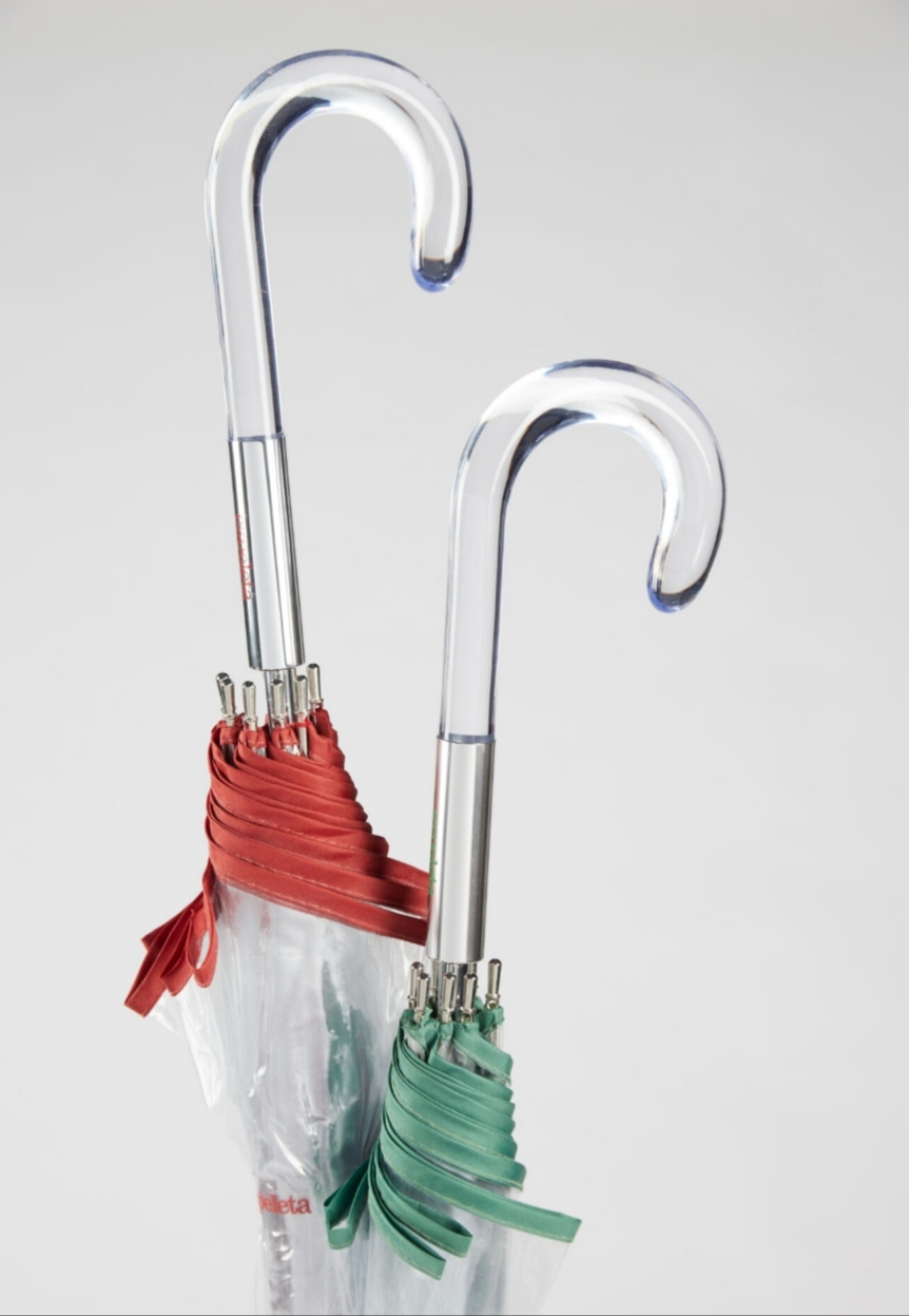 Este paraguas pesa muy poco y es resistente. La cubierta del paraguas es de plástico transparente animado por el color que le aportan la cenefa, las varillas y el puño.